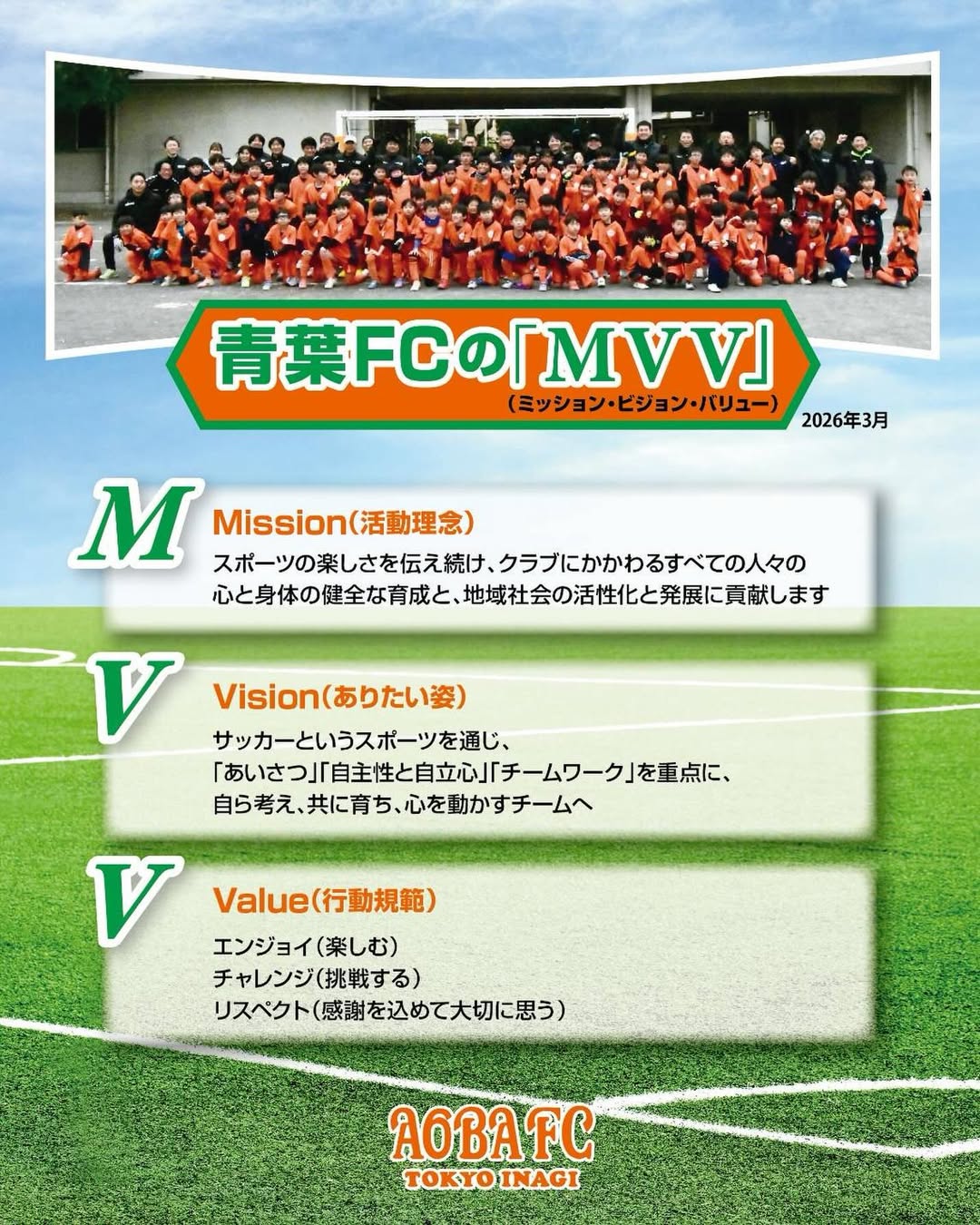 私たち青葉フットボールクラブ(以下「青葉FC」と称します)は、2004年4月に設立したU-12のサッカークラブです。 稲城市矢野口の青葉幼稚園のご協力のもと活動しています。 稲城市内だけでなく、近隣の調布市、川崎市からも多くの選手が参加しています。 タカハシスポーツ(稲城市矢野口)のシニアチームに所属するコーチも多く、地域密着型のサッカークラブです。